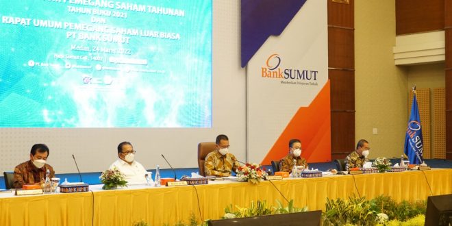 Demikian dipaparkan dalam Pelaksanaan Rapat Umum Pemegang Saham (RUPS) Tahunan dan Rapat Umum Pemegang Saham Luar Biasa (RUPS LB) PT Bank Sumut yang digelar di Ballroom Lt 10 Gedung Bank Sumut Jl Imam Bonjol No 18 Medan, Kamis (24/3/2022).