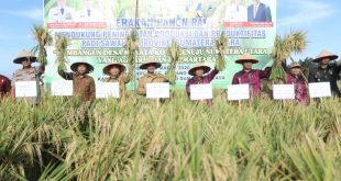 Gubernur Sumatera Utara yang diwakili Staf Ahli Bidang Hukum, Politik dan Pemerintahan bersama Bupati dan Forkopimda Asahan, Kadis Tanaman Pangan dan Hortikultura Provsu, Sekretaris Daerah Kab. Asahan, Asisten dan Staf Ahli Bupati Asahan serta OPD dan Kelompok Tani ikuti gerakan panen padi dengan usung tema “membangun desa, menata kota menuju …