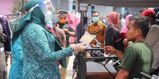 Memakai masker menjadi salah satu upaya pencegahan penyebaran COVID-19 ,upaya itu dilakukan Ketua Tim Penggerak Pemberdayaan Kesejahteraan Keluarga (TP-PKK) Kota Tanjungbalai, Hj Sri Silvisa Novita M Syahrial akrab disapa Bu Vita, bersama rombongan dengan membagikan masker dan mengedukasi para pedagang dan pengunjung mengenai cara memutus mata rantai penyebaran wabah Virus Corona (COVID-19), Kamis (14/05/2020) siang.