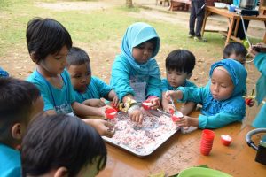 Aktifitas siswa-siswi PGTK YPSA di Dusun Kreatif Marindal, Selasa(12/02/19).