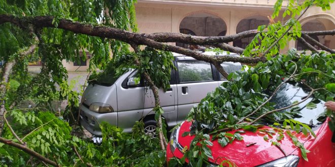 “Pohon tumbang jenis Mahoni yang menimpa dua unit mobil yaitu mobil Toyota Agya dan Daihatsu Espass. Penyebab pohon tumbang dikarenakan hujan lebat disertai angin kencang. Tidak ada korban jiwa dalam kejadian ini,” jelasnya.
