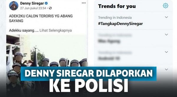 Diketahui, Denny Siregar telah dilaporkan ke polisi oleh sejumlah ormas, OKP, LSM hingga pimpinan pondok pesantren yang tergabung dalam Forum Mujahid Tasikmalaya, ke Polres setempat pada Kamis (2/7) lalu.