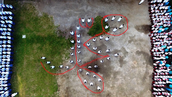 Namun ketika dilihat dari atas dengan menggunakan kamera drone ternyata terlihat jelas formasi barisan Pasukan Pengibar Bendera (Paskibra) membentuk lafadz ‘Muhammad’ pada Peringatan HUT ke-73 RI di Yayasan Pendidikan Shafiyyatul Amaliyyah (YPSA).