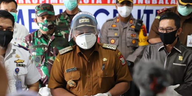 Wali Kota Tanjungbalai, H.M Syahrial SH,MH bersama Forum Komunikasi Pimpinan Daerah (Forkopimda) Tanjungbalai, Ketua DPRD Tengku Eswin ST, Kapolres TanjungBalai AKBP Putu Yudha Prawira., S.I.K. M.H, Dan Lanal TBA Let Kol Laut (P) Dafris, Dan Dim 0208 Asahan Letkol Sri Marantika., S.Sos, Kepala Kejaksaan Negri Kota TanjungBalai A.A.G Satya Markandea., S.H, General Manager Pelindo I Cab Tanjungbalai Aulia Rahman Hasibuan dan Kepala KSOP Tanjungbalai Afrizal Tanjung menerima kepulangan 146 Tenaga Kerja Indonesia (TKI) asal Tanjungbalai dari Malaysia saat tiba di Pelabuhan Teluk Nibung, Tanjungbalai, Senin (18/5/2020) sore.